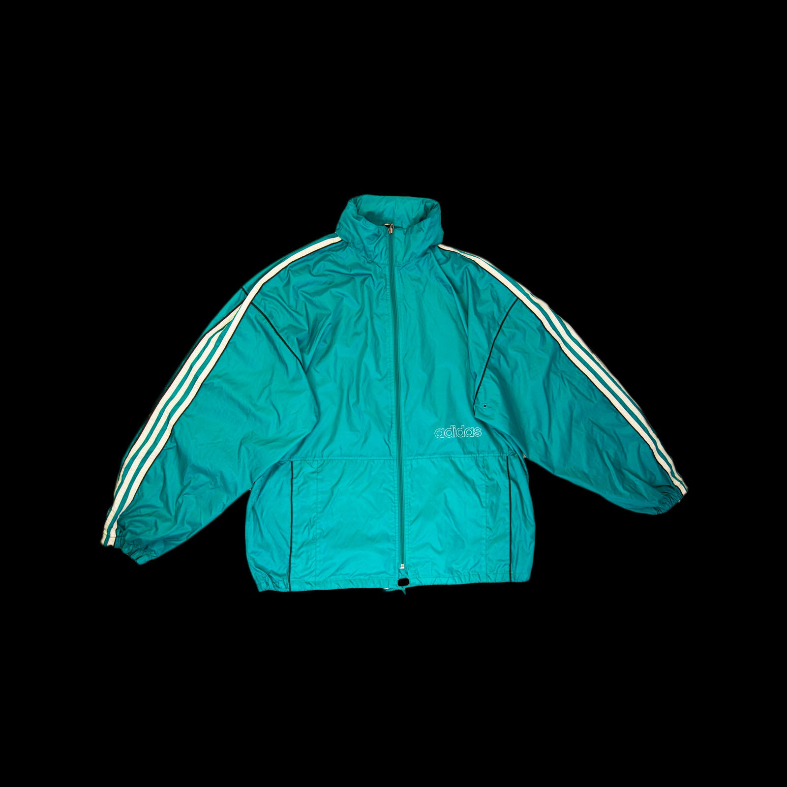 Adidas Regenjacke aus den 1980s mit ausklappbarer Kapuze und Wasserabweisend Polyamid im stylischen Türkis